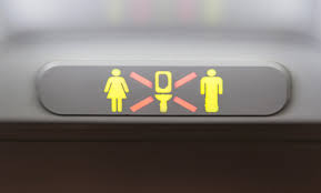 an airplane bathroom I do my business in lightning speed, slam the lid down,